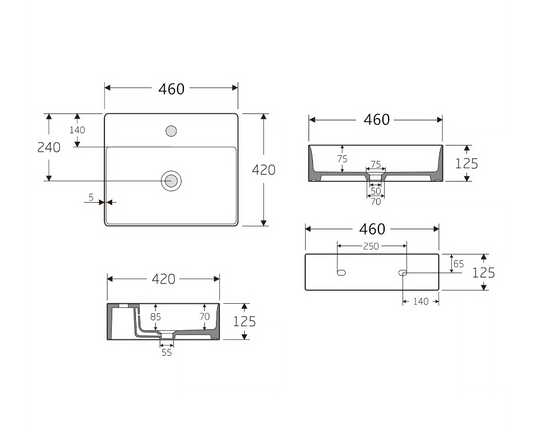 VATTE PT5540 WALL MOUNT BASIN 550X400MM